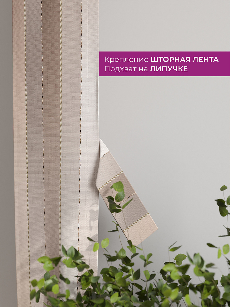 На высоте 125 см. пришит подхват (ширина 10 см.), который позволяет легко зафиксировать ваш тюль или шторы в нужном положении при помощи липучки.
