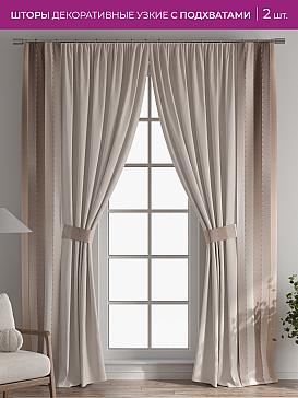 Если у вас уже есть портьеры или тюль, добавление наших узких штор с подхватами — самый быстрый, простой и доступный способ обновить интерьер, не меняя основной текстиль, а значит без лишних затрат.