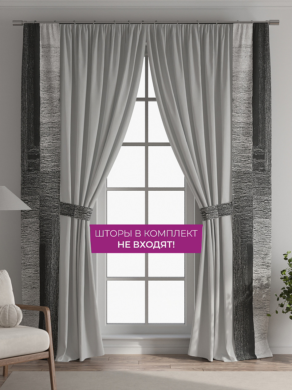 В комплект входят две узкие шторы шириной всего 38 см и длиной 260 см., которые навешиваются рядом с вашими занавесками или тюлем не утяжеляя вид окна и не препятствуя попаданию солнечного света в комнату. При этом выполняют роль подхватов и добавляют акцент в интерьер.
