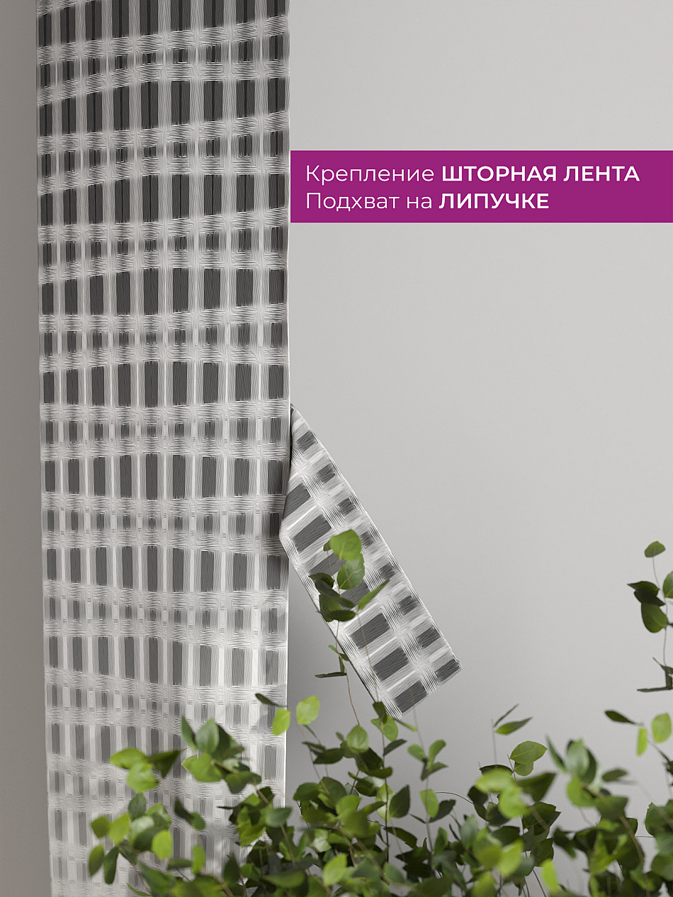 На высоте 125 см. пришит подхват (ширина 10 см.), который позволяет легко зафиксировать ваш тюль или шторы в нужном положении при помощи липучки.