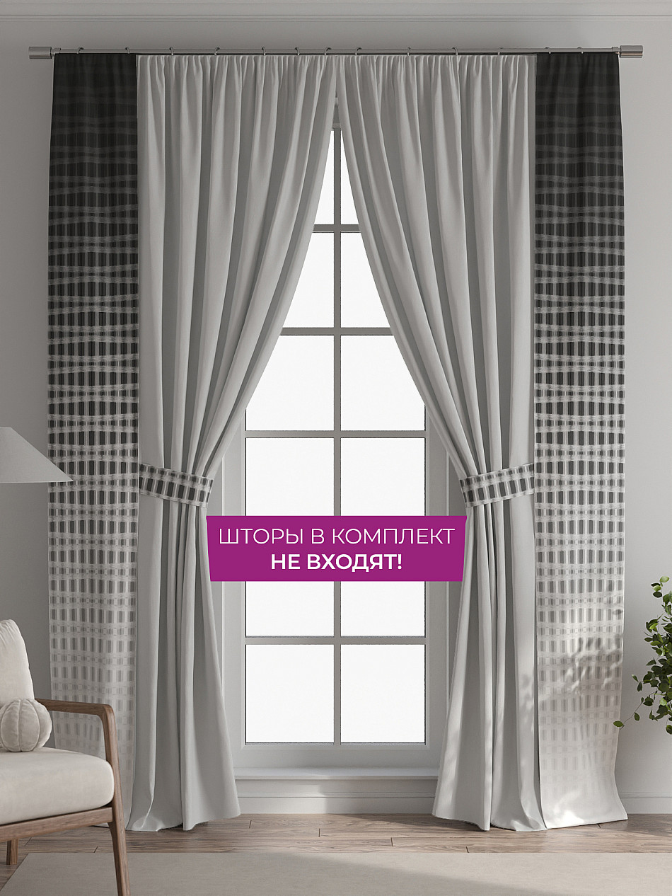 В комплект входят две узкие шторы шириной всего 38 см и длиной 260 см., которые навешиваются рядом с вашими занавесками или тюлем не утяжеляя вид окна и не препятствуя попаданию солнечного света в комнату. При этом выполняют роль подхватов и добавляют акцент в интерьер.