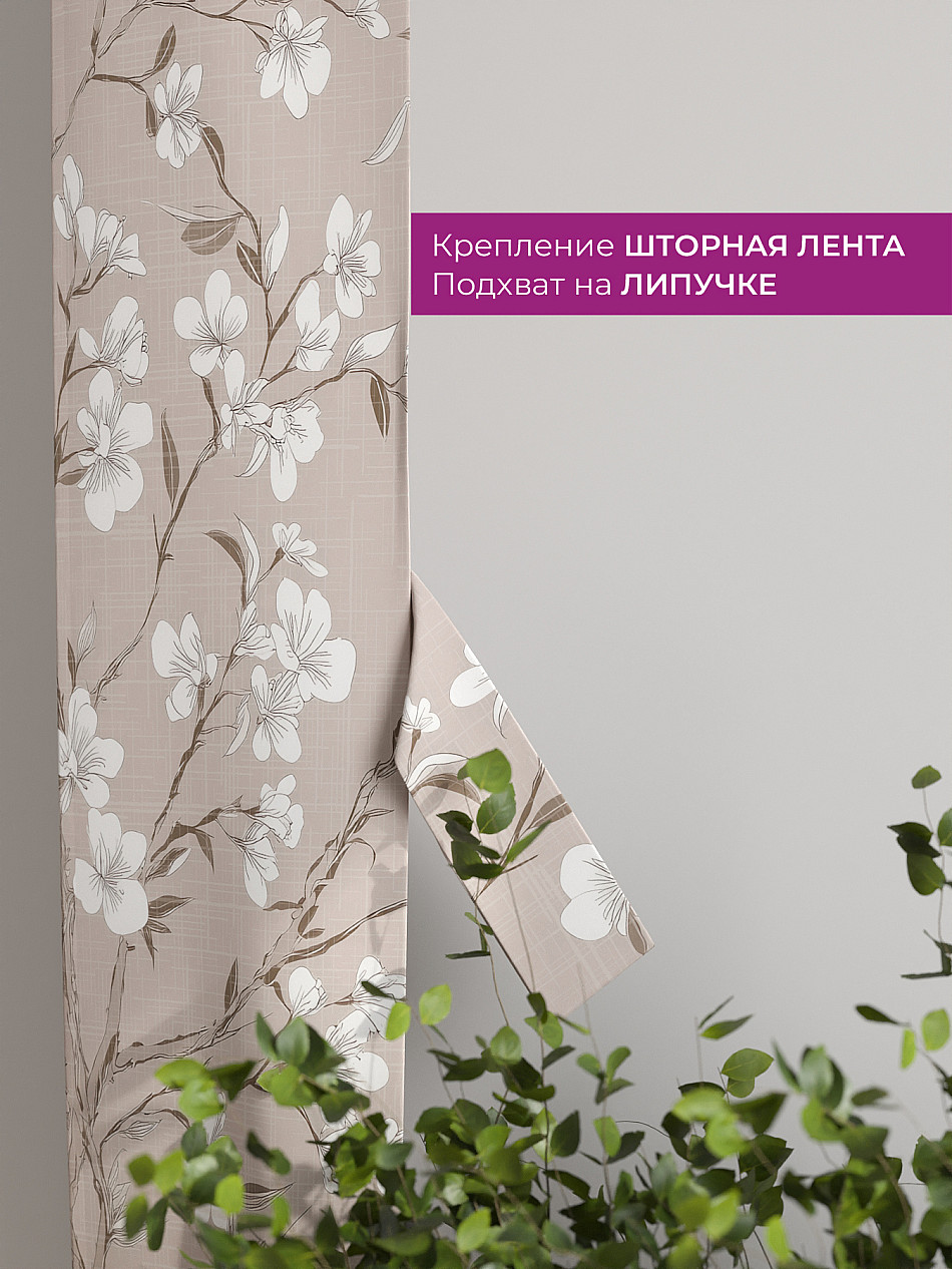 На высоте 125 см. пришит подхват (ширина 10 см.), который позволяет легко зафиксировать ваш тюль или шторы в нужном положении при помощи липучки.