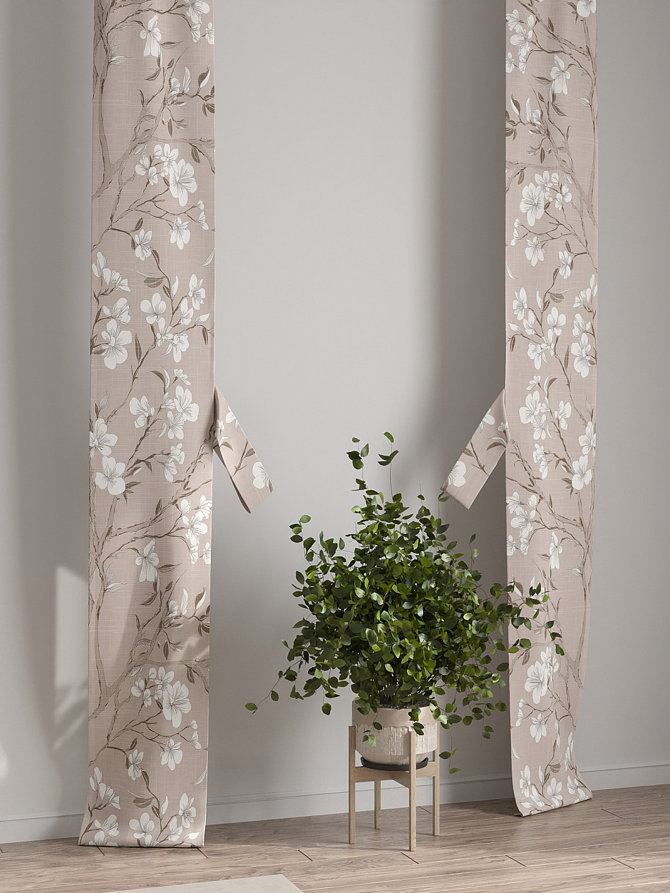 Комплект готов к развешиванию. По верхнему краю пристрочена шторная лента 6 см, с 2-мя рядами петель под крючки, что позволяет регулировать высоту. Одновременно имеется кулиска (карман для штанги), в которую можно продеть карниз любого диаметра.