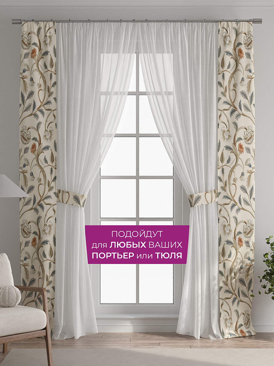 Панели с вшитыми подхватами подходят как для лёгкого тюля, так и для плотных портьер. Дополните тюль на кухне, шторы в гостиной, занавески в детской, портьеры в спальне и ваш интерьер заиграет новыми красками без серьезных вложений, а благодаря тому, что подхват пришит к нашим шторам - вам не нужно сверлить стены, устанавливать крючки или портить оконные рамы. Подхват всегда в нужном месте, не теряется, не смещается и обеспечивает аккуратную фиксацию.