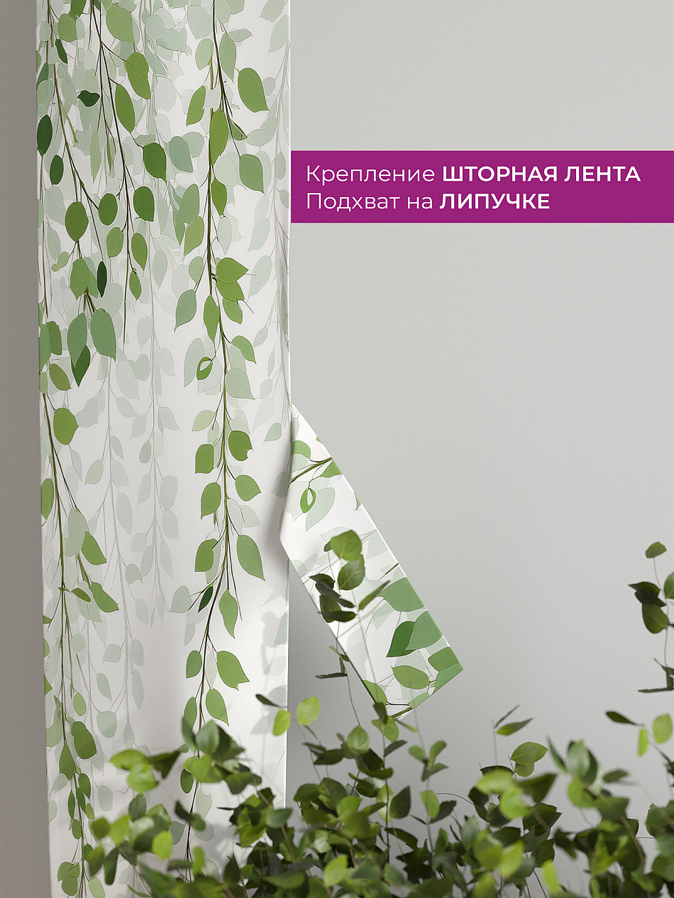 На высоте 125 см. пришит подхват (ширина 10 см.), который позволяет легко зафиксировать ваш тюль или шторы в нужном положении при помощи липучки.