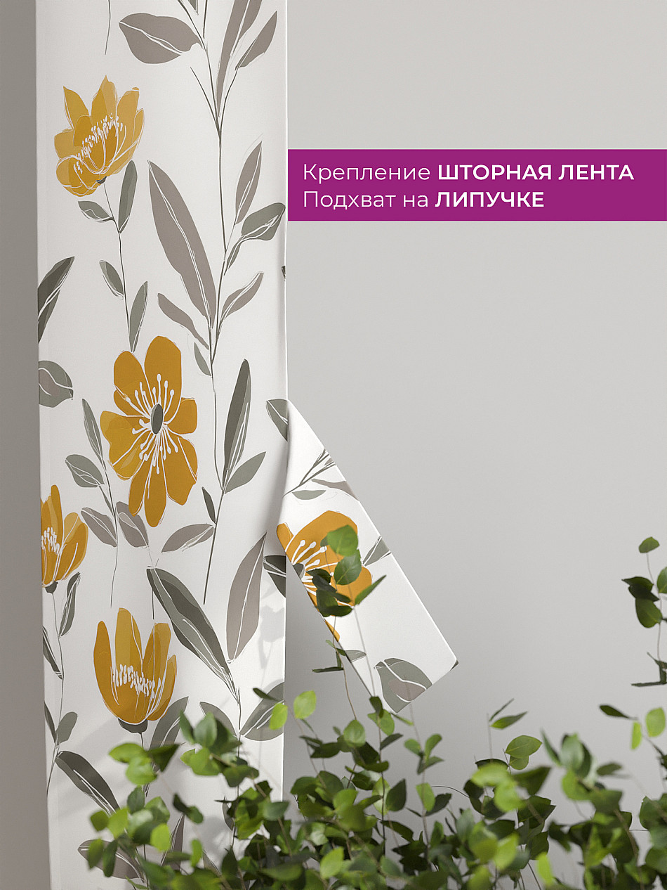 На высоте 125 см. пришит подхват (ширина 10 см.), который позволяет легко зафиксировать ваш тюль или шторы в нужном положении при помощи липучки.