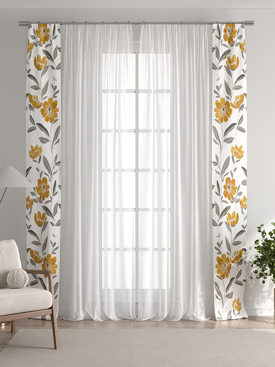 В комплект входят две узкие шторы шириной всего 38 см и длиной 260 см., которые навешиваются рядом с вашими занавесками или тюлем не утяжеляя вид окна и не препятствуя попаданию солнечного света в комнату. При этом выполняют роль подхватов и добавляют акцент в интерьер.