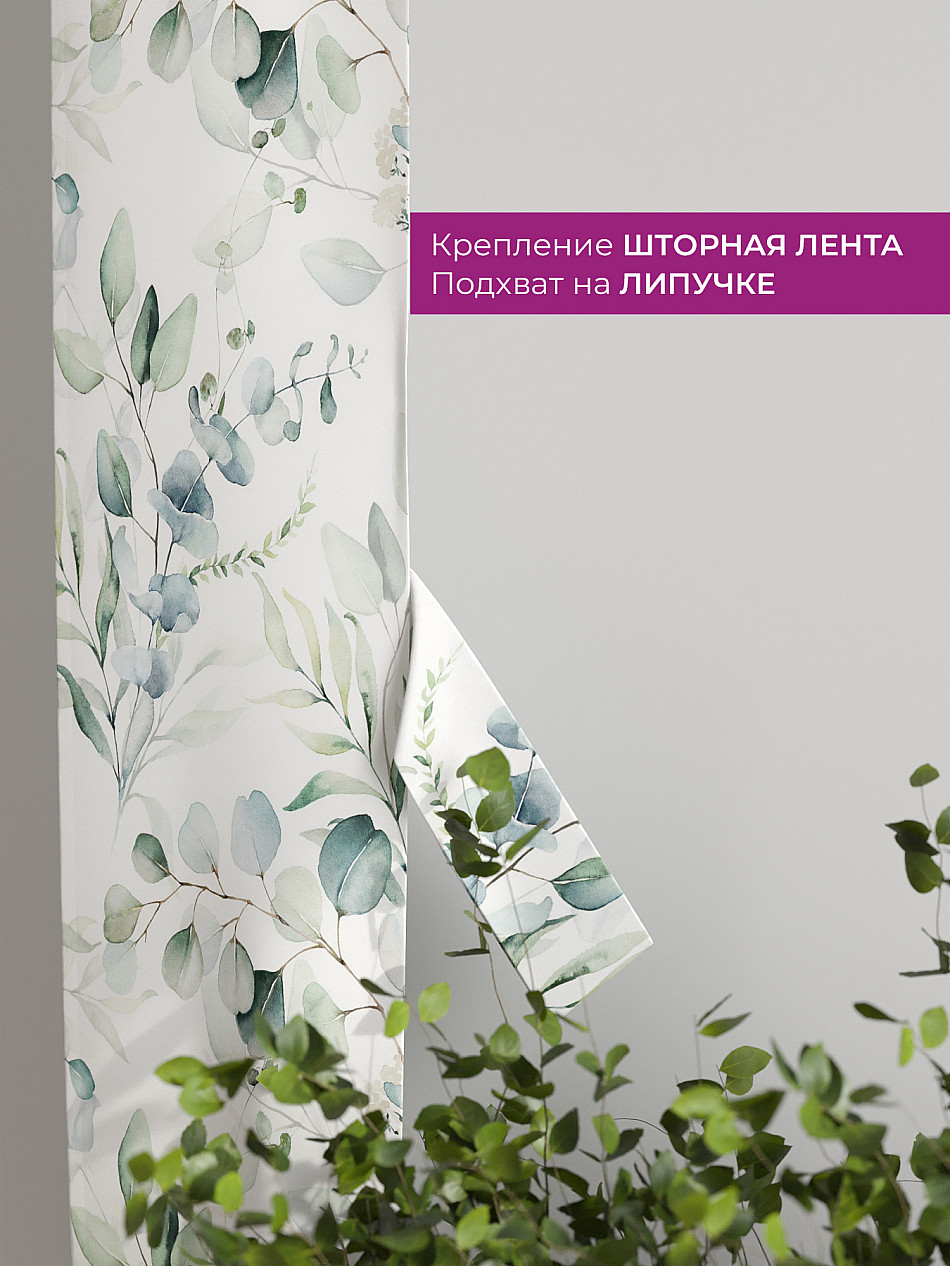 На высоте 125 см. пришит подхват (ширина 10 см.), который позволяет легко зафиксировать ваш тюль или шторы в нужном положении при помощи липучки.