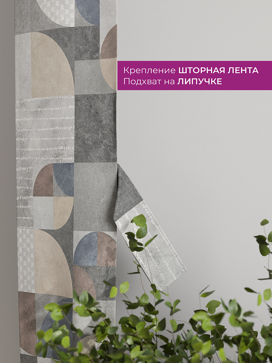 На высоте 125 см. пришит подхват (ширина 10 см.), который позволяет легко зафиксировать ваш тюль или шторы в нужном положении при помощи липучки.