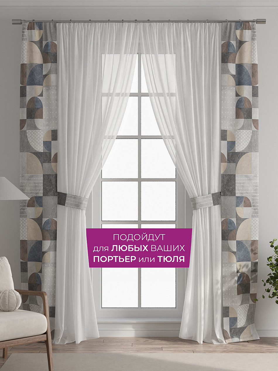 В комплект входят две узкие шторы шириной всего 38 см и длиной 260 см., которые навешиваются рядом с вашими занавесками или тюлем не утяжеляя вид окна и не препятствуя попаданию солнечного света в комнату. При этом выполняют роль подхватов и добавляют акцент в интерьер.