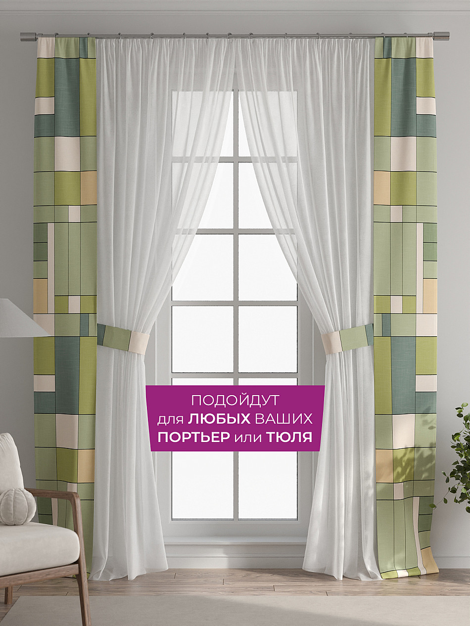В комплект входят две узкие шторы шириной всего 38 см и длиной 260 см., которые навешиваются рядом с вашими занавесками или тюлем не утяжеляя вид окна и не препятствуя попаданию солнечного света в комнату. При этом выполняют роль подхватов и добавляют акцент в интерьер.