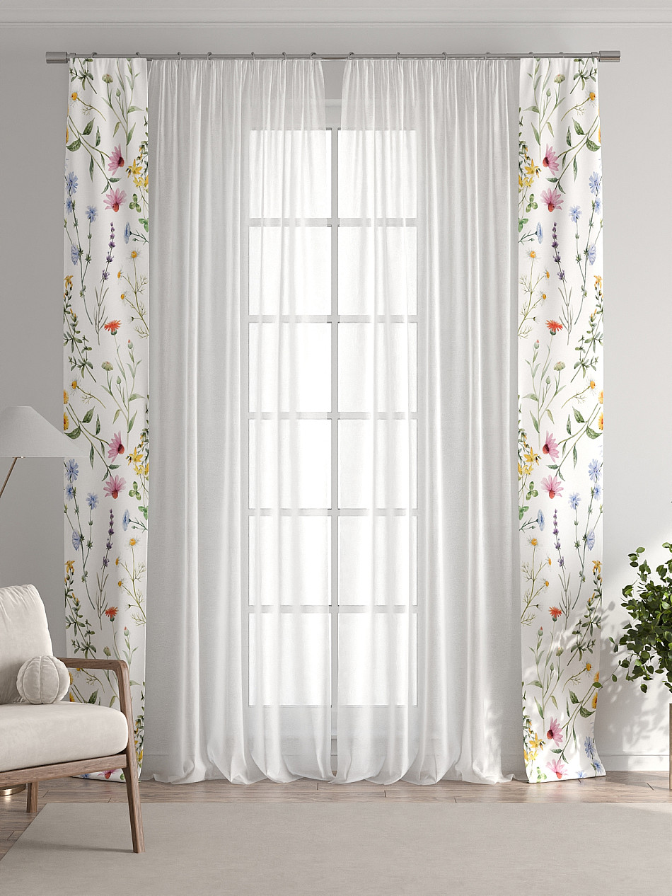 В комплект входят две узкие шторы шириной всего 38 см и длиной 260 см., которые навешиваются рядом с вашими занавесками или тюлем не утяжеляя вид окна и не препятствуя попаданию солнечного света в комнату. При этом выполняют роль подхватов и добавляют акцент в интерьер.