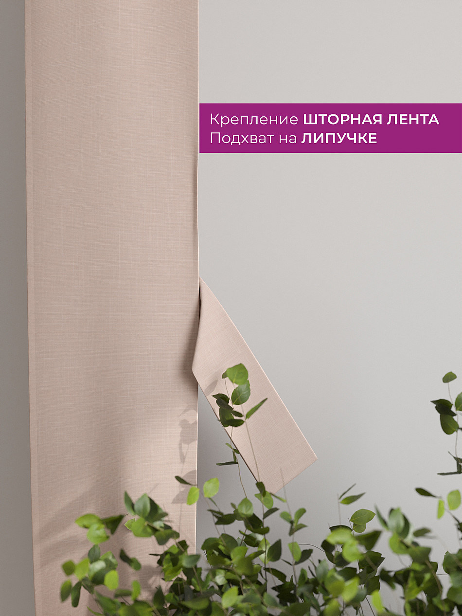 Комплект готов к развешиванию. По верхнему краю пристрочена шторная лента 6 см, с 2-мя рядами петель под крючки, что позволяет регулировать высоту. Одновременно имеется кулиска (карман для штанги), в которую можно продеть карниз любого диаметра.