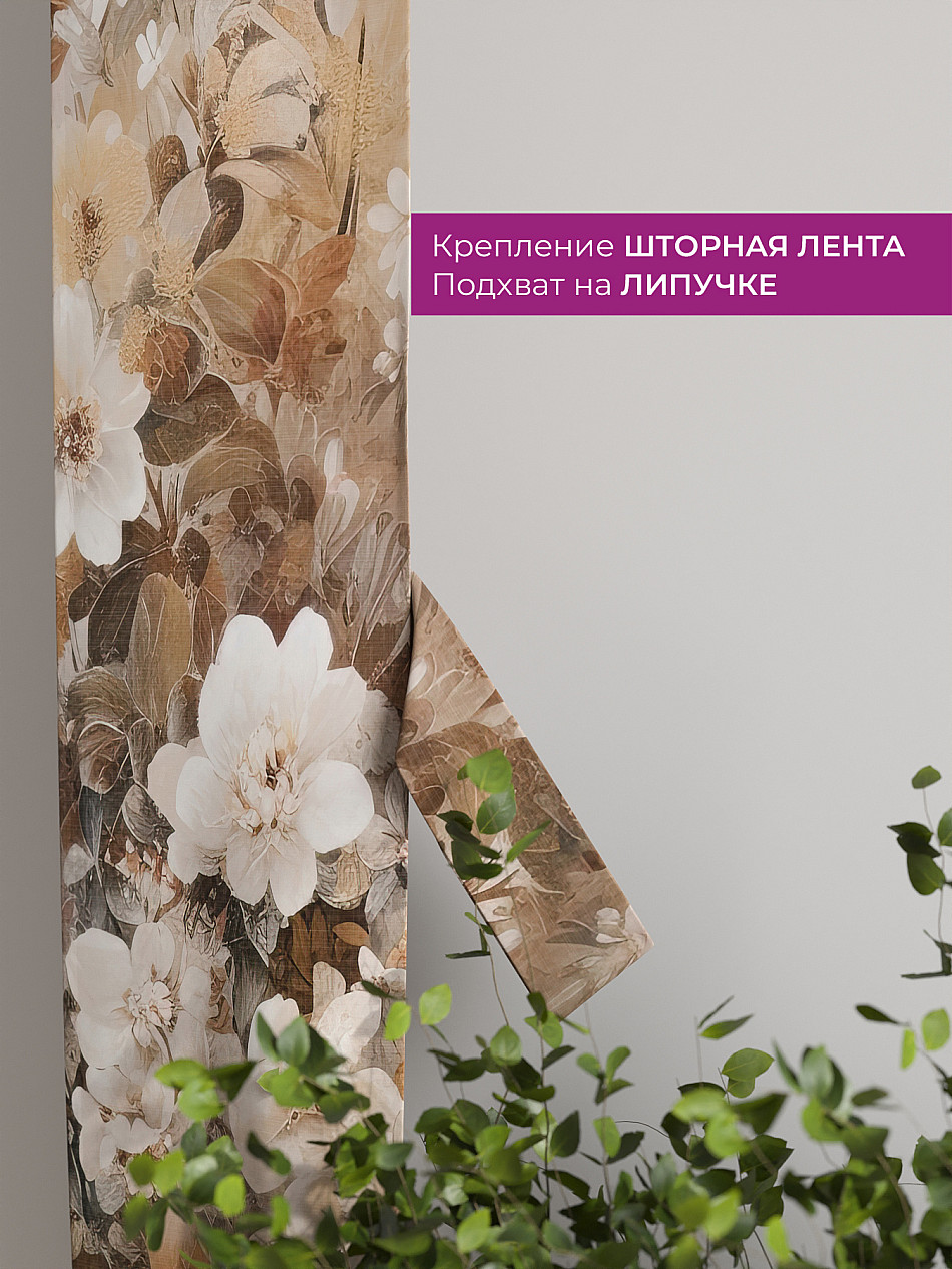 На высоте 125 см. пришит подхват (ширина 10 см.), который позволяет легко зафиксировать ваш тюль или шторы в нужном положении при помощи липучки.