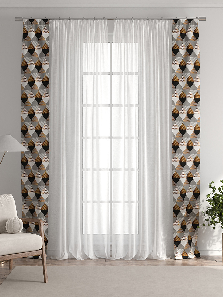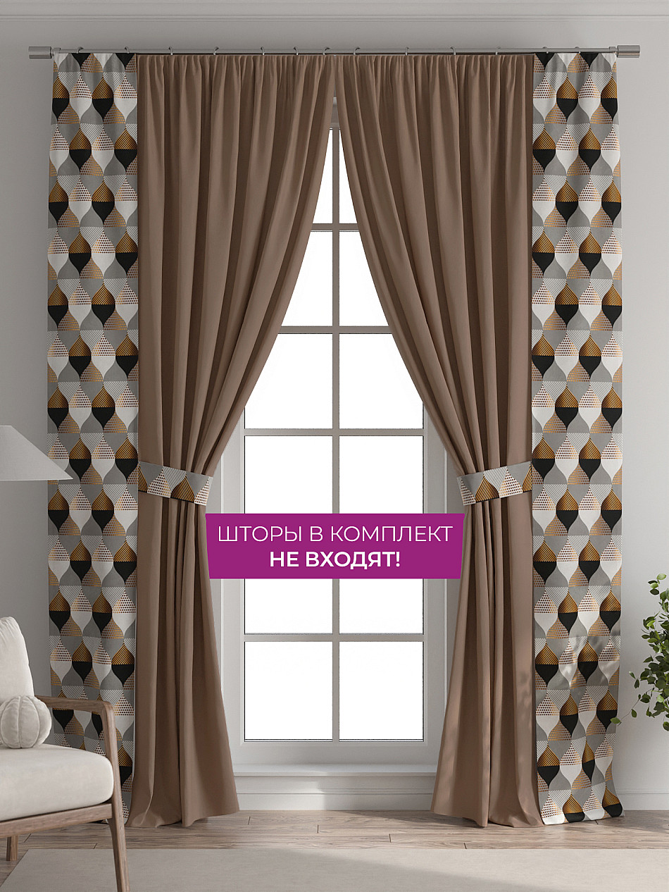 В комплект входят две узкие шторы шириной всего 38 см и длиной 260 см., которые навешиваются рядом с вашими занавесками или тюлем не утяжеляя вид окна и не препятствуя попаданию солнечного света в комнату. При этом выполняют роль подхватов и добавляют акцент в интерьер.
