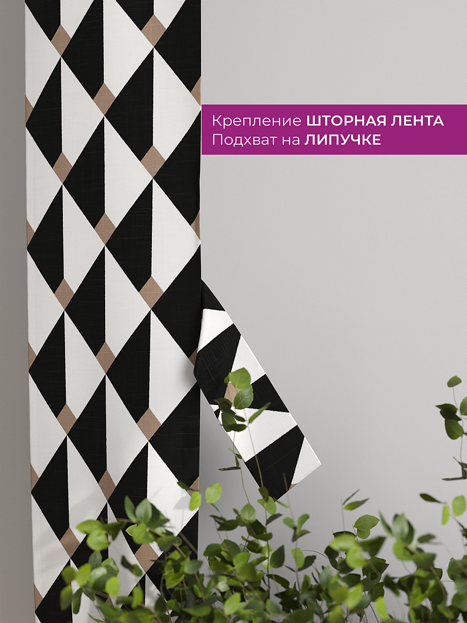 Комплект готов к развешиванию. По верхнему краю пристрочена шторная лента 6 см, с 2-мя рядами петель под крючки, что позволяет регулировать высоту. Одновременно имеется кулиска (карман для штанги), в которую можно продеть карниз любого диаметра.