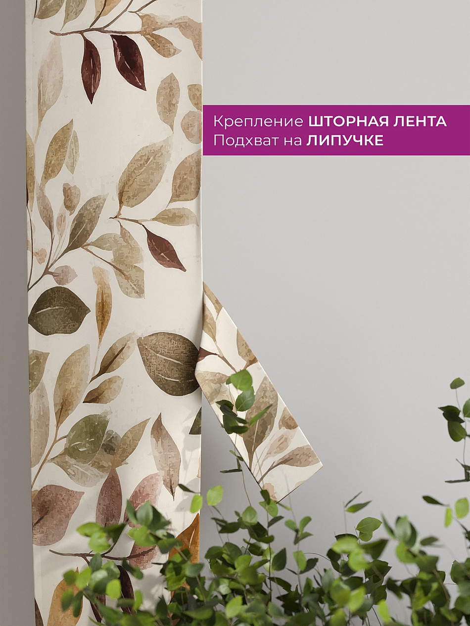 На высоте 125 см. пришит подхват (ширина 10 см.), который позволяет легко зафиксировать ваш тюль или шторы в нужном положении при помощи липучки.