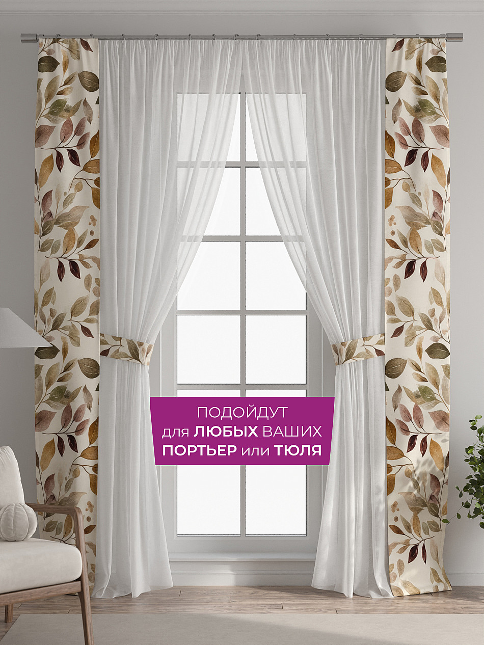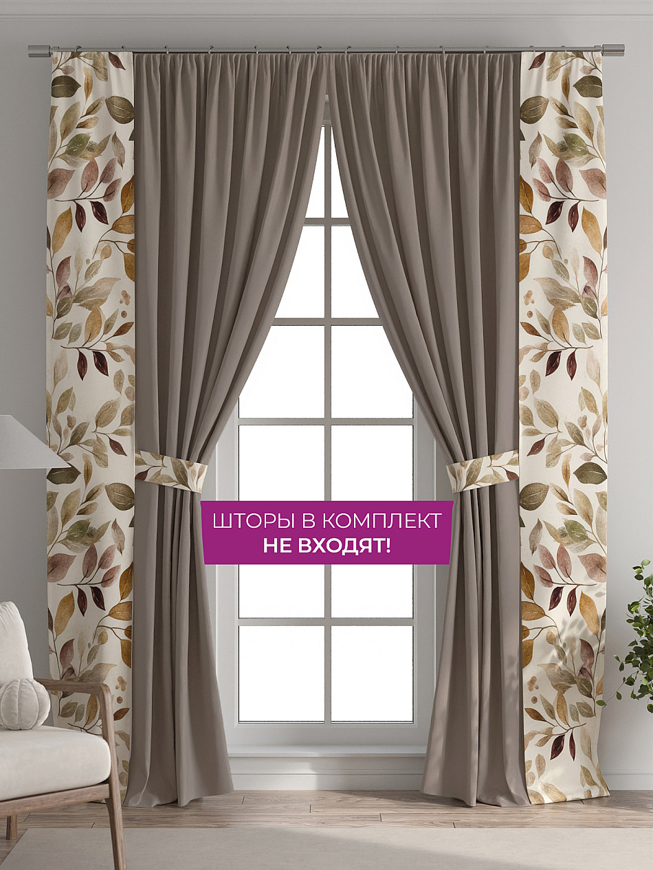В комплект входят две узкие шторы шириной всего 38 см и длиной 260 см., которые навешиваются рядом с вашими занавесками или тюлем не утяжеляя вид окна и не препятствуя попаданию солнечного света в комнату. При этом выполняют роль подхватов и добавляют акцент в интерьер.