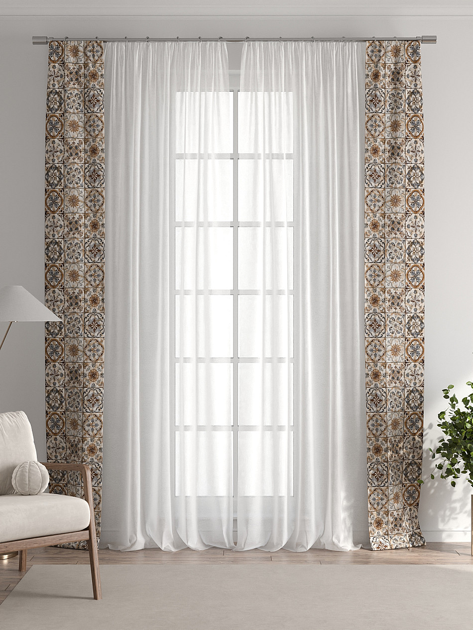 В комплект входят две узкие шторы шириной всего 38 см и длиной 260 см., которые навешиваются рядом с вашими занавесками или тюлем не утяжеляя вид окна и не препятствуя попаданию солнечного света в комнату. При этом выполняют роль подхватов и добавляют акцент в интерьер.