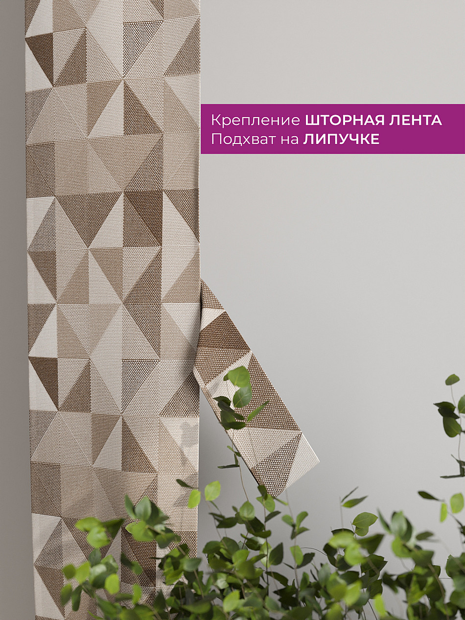 Комплект готов к развешиванию. По верхнему краю пристрочена шторная лента 6 см, с 2-мя рядами петель под крючки, что позволяет регулировать высоту. Одновременно имеется кулиска (карман для штанги), в которую можно продеть карниз любого диаметра.