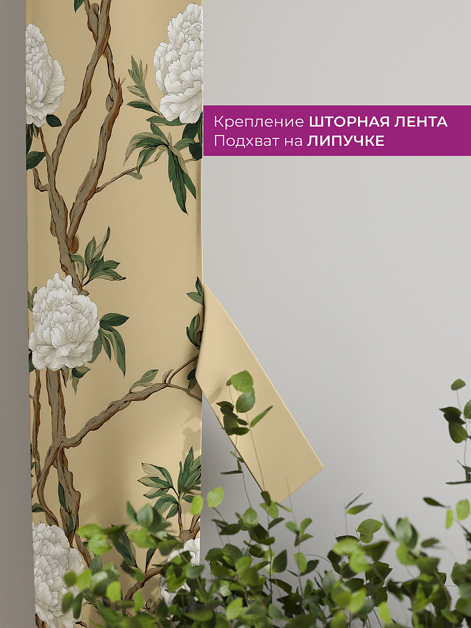 На высоте 125 см. пришит подхват (ширина 10 см.), который позволяет легко зафиксировать ваш тюль или шторы в нужном положении при помощи липучки.
