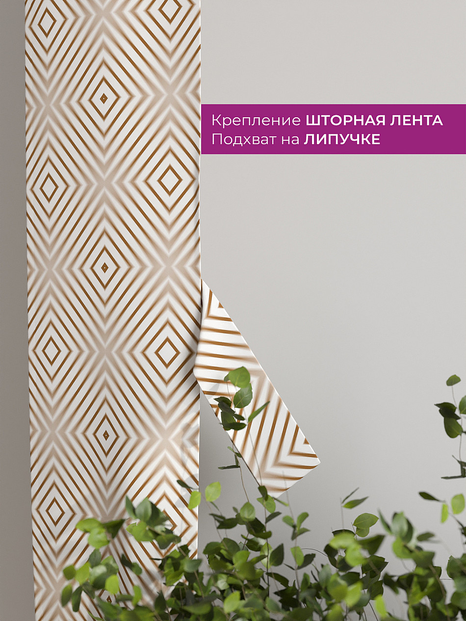 Комплект готов к развешиванию. По верхнему краю пристрочена шторная лента 6 см, с 2-мя рядами петель под крючки, что позволяет регулировать высоту. Одновременно имеется кулиска (карман для штанги), в которую можно продеть карниз любого диаметра.