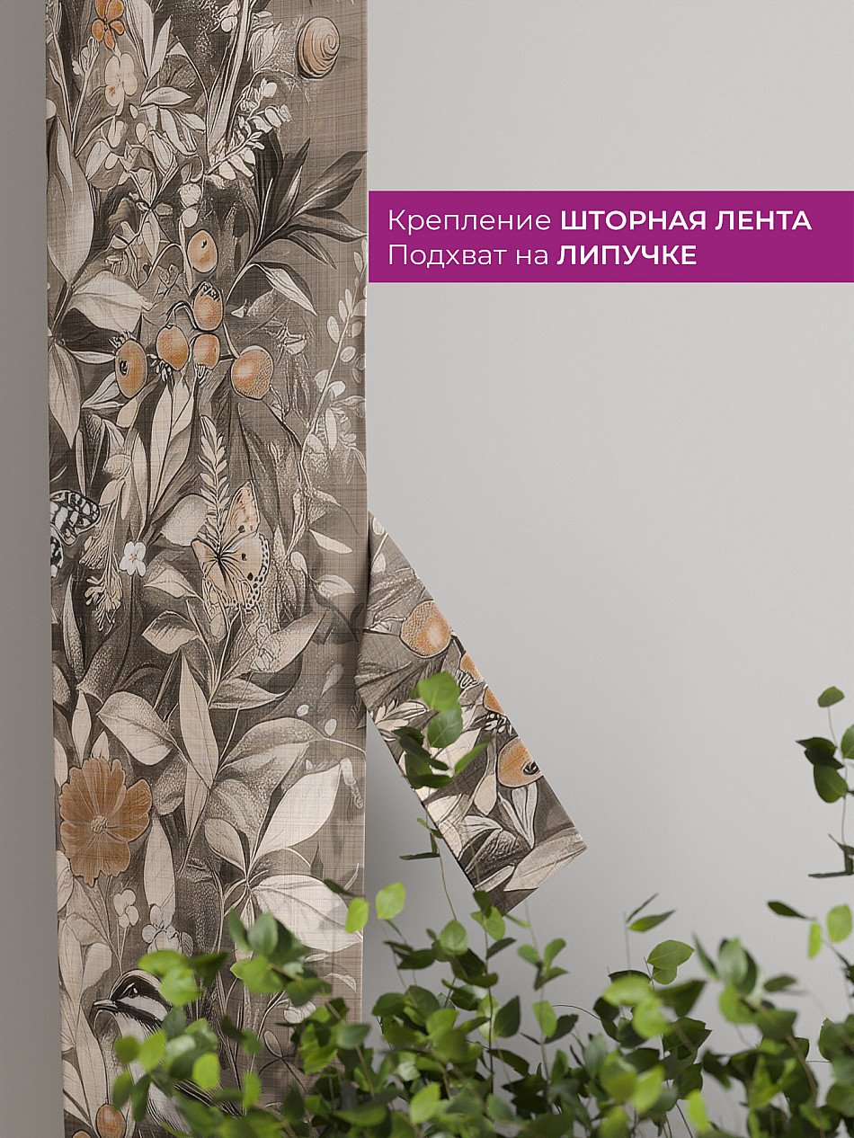 На высоте 125 см. пришит подхват (ширина 10 см.), который позволяет легко зафиксировать ваш тюль или шторы в нужном положении при помощи липучки.