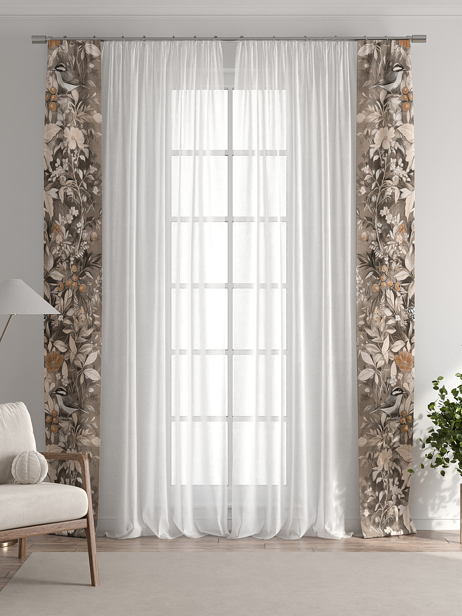 В комплект входят две узкие шторы шириной всего 38 см и длиной 260 см., которые навешиваются рядом с вашими занавесками или тюлем не утяжеляя вид окна и не препятствуя попаданию солнечного света в комнату. При этом выполняют роль подхватов и добавляют акцент в интерьер.