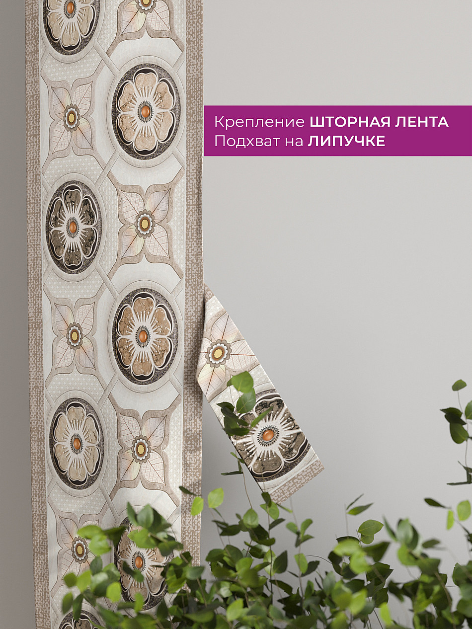 На высоте 125 см. пришит подхват (ширина 10 см.), который позволяет легко зафиксировать ваш тюль или шторы в нужном положении при помощи липучки.