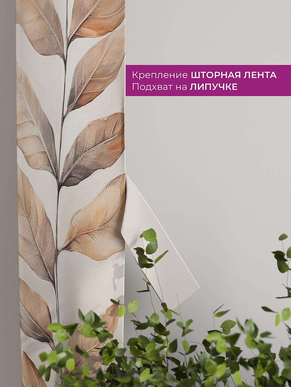 На высоте 125 см. пришит подхват (ширина 10 см.), который позволяет легко зафиксировать ваш тюль или шторы в нужном положении при помощи липучки.