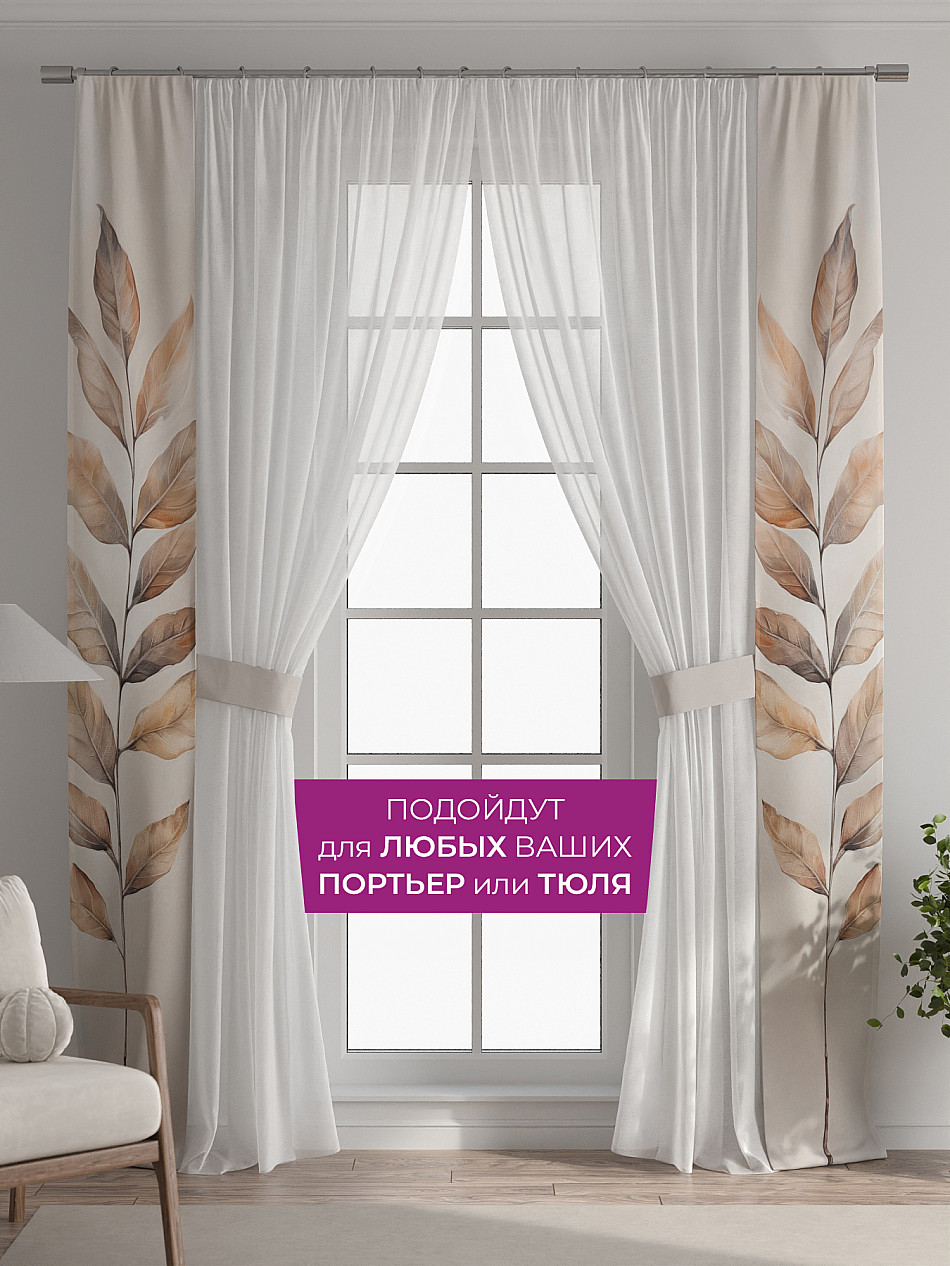 В комплект входят две узкие шторы шириной всего 38 см и длиной 260 см., которые навешиваются рядом с вашими занавесками или тюлем не утяжеляя вид окна и не препятствуя попаданию солнечного света в комнату. При этом выполняют роль подхватов и добавляют акцент в интерьер.