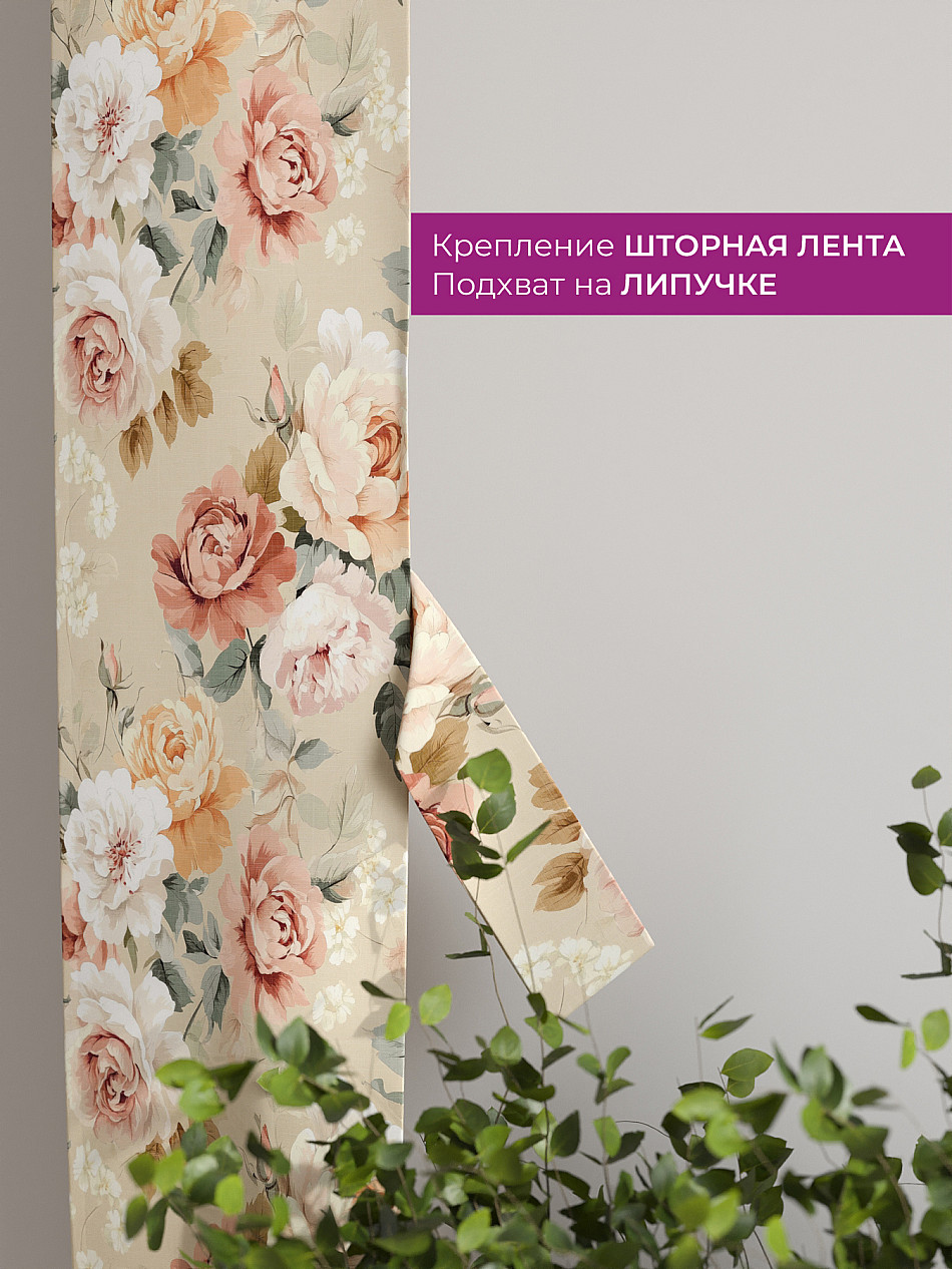 На высоте 125 см. пришит подхват (ширина 10 см.), который позволяет легко зафиксировать ваш тюль или шторы в нужном положении при помощи липучки.