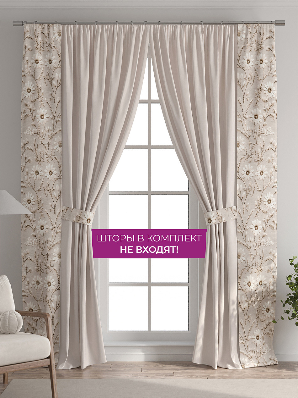 Декоративные подхваты 38х260 см — 2 шт. ( Изменить высоту) Крепление: шторная лента (крючки), кулиска Подробнее