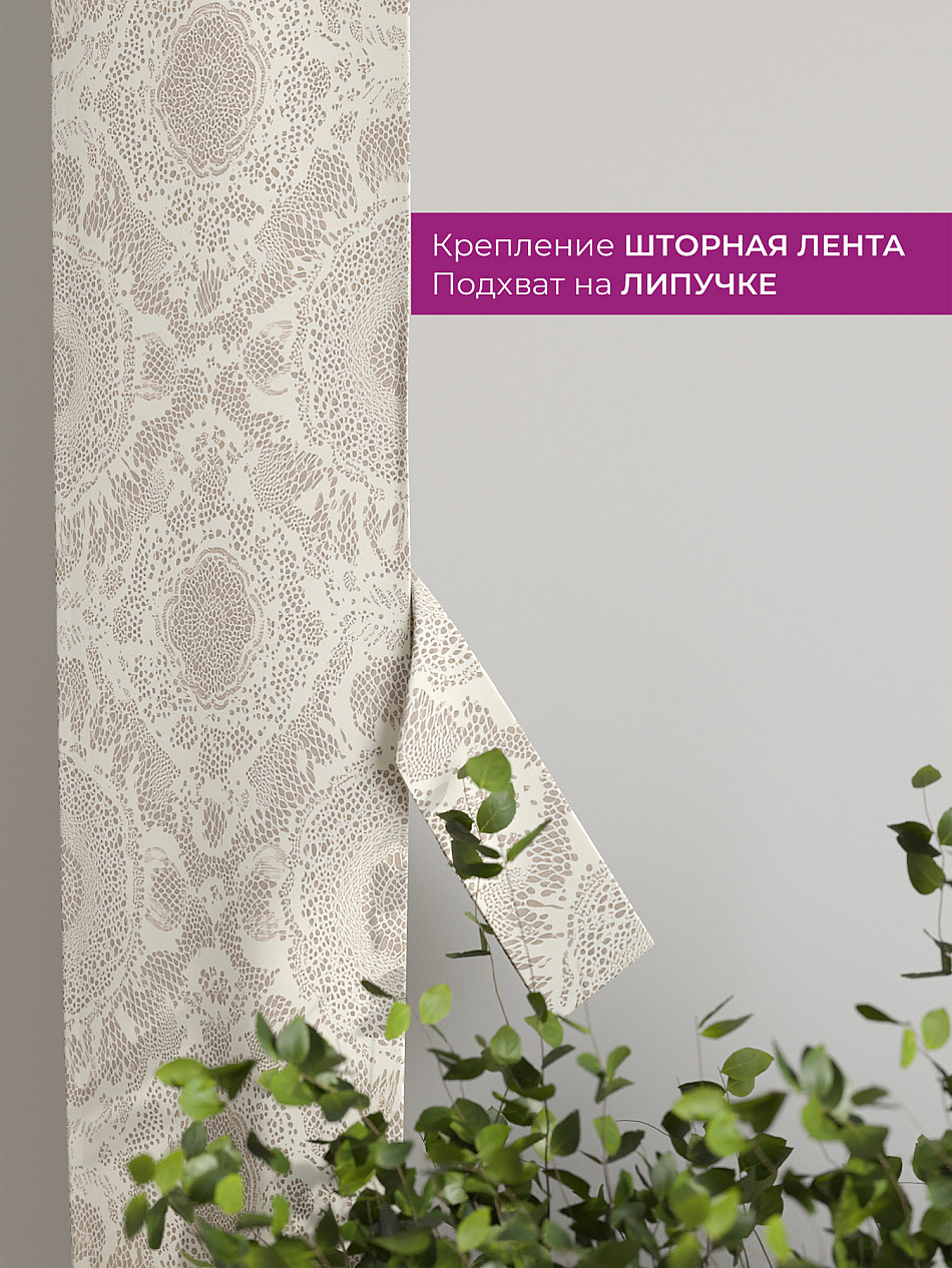 На высоте 125 см. пришит подхват (ширина 10 см.), который позволяет легко зафиксировать ваш тюль или шторы в нужном положении при помощи липучки.