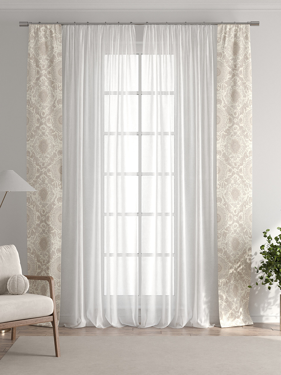 В комплект входят две узкие шторы шириной всего 38 см и длиной 260 см., которые навешиваются рядом с вашими занавесками или тюлем не утяжеляя вид окна и не препятствуя попаданию солнечного света в комнату. При этом выполняют роль подхватов и добавляют акцент в интерьер.