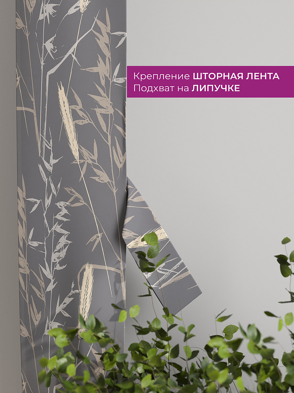 На высоте 125 см. пришит подхват (ширина 10 см.), который позволяет легко зафиксировать ваш тюль или шторы в нужном положении при помощи липучки.