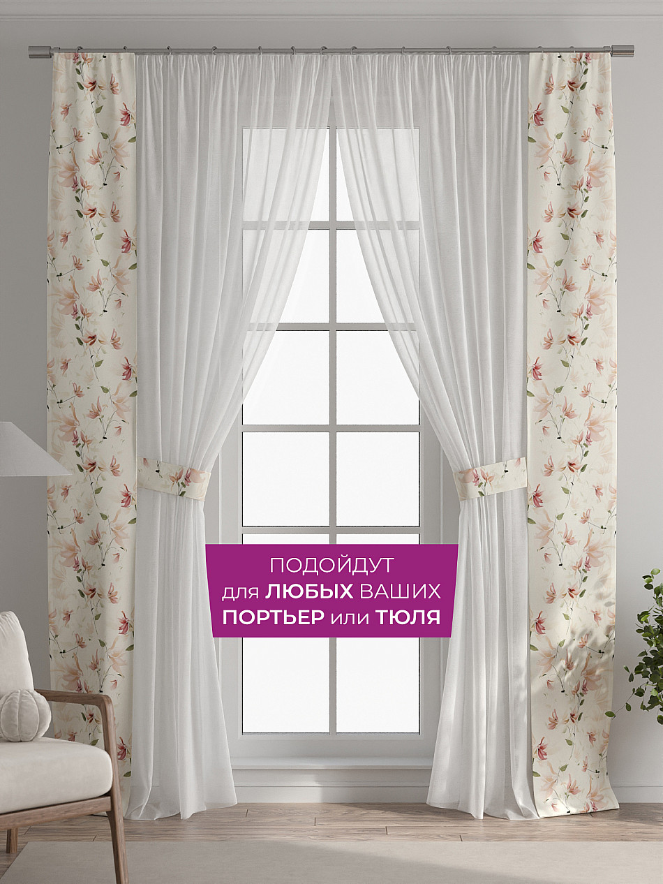 Панели с вшитыми подхватами подходят как для лёгкого тюля, так и для плотных портьер. Дополните тюль на кухне, шторы в гостиной, занавески в детской, портьеры в спальне и ваш интерьер заиграет новыми красками без серьезных вложений, а благодаря тому, что подхват пришит к нашим шторам - вам не нужно сверлить стены, устанавливать крючки или портить оконные рамы. Подхват всегда в нужном месте, не теряется, не смещается и обеспечивает аккуратную фиксацию.