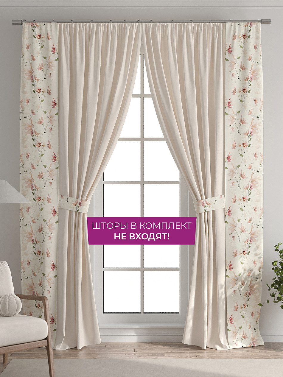 В комплект входят две узкие шторы шириной всего 38 см и длиной 260 см., которые навешиваются рядом с вашими занавесками или тюлем не утяжеляя вид окна и не препятствуя попаданию солнечного света в комнату. При этом выполняют роль подхватов и добавляют акцент в интерьер.