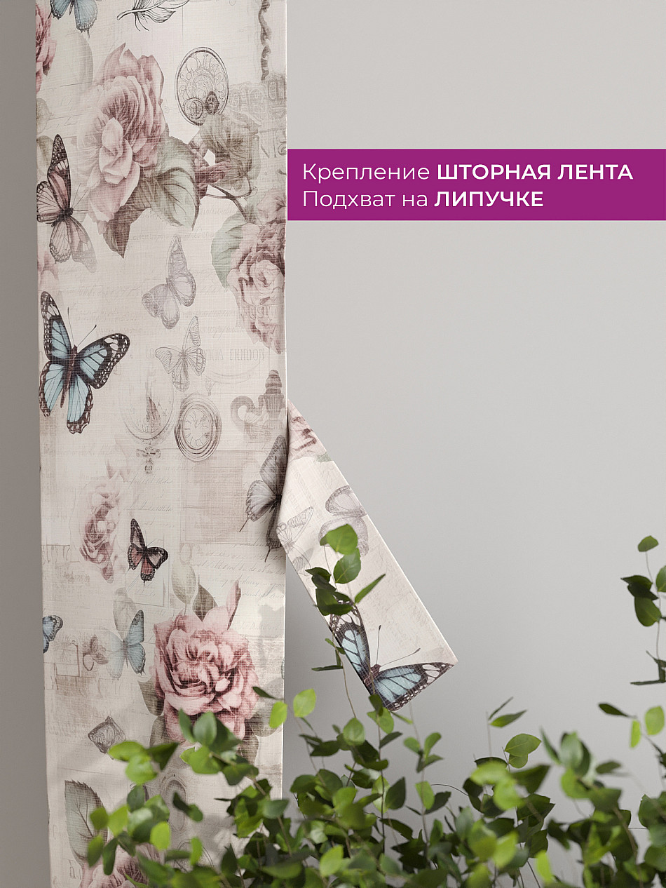 На высоте 125 см. пришит подхват (ширина 10 см.), который позволяет легко зафиксировать ваш тюль или шторы в нужном положении при помощи липучки.