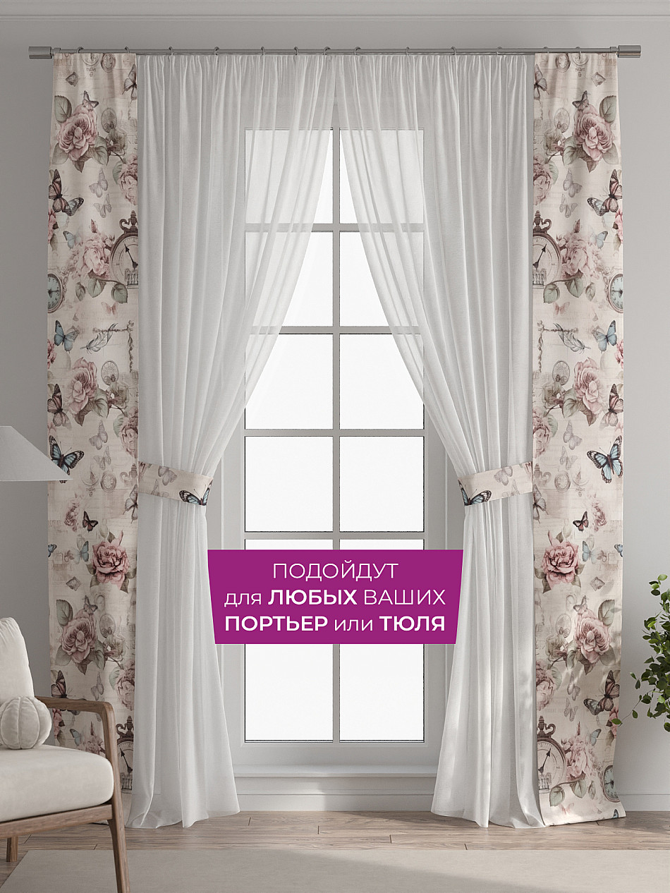 Панели с вшитыми подхватами подходят как для лёгкого тюля, так и для плотных портьер. Дополните тюль на кухне, шторы в гостиной, занавески в детской, портьеры в спальне и ваш интерьер заиграет новыми красками без серьезных вложений, а благодаря тому, что подхват пришит к нашим шторам - вам не нужно сверлить стены, устанавливать крючки или портить оконные рамы. Подхват всегда в нужном месте, не теряется, не смещается и обеспечивает аккуратную фиксацию.