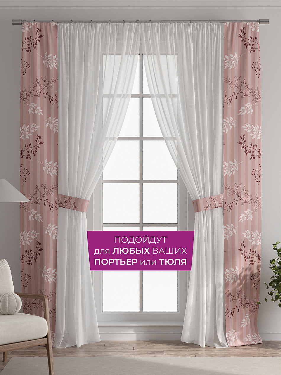 В комплект входят две узкие шторы шириной всего 38 см и длиной 260 см., которые навешиваются рядом с вашими занавесками или тюлем не утяжеляя вид окна и не препятствуя попаданию солнечного света в комнату. При этом выполняют роль подхватов и добавляют акцент в интерьер.