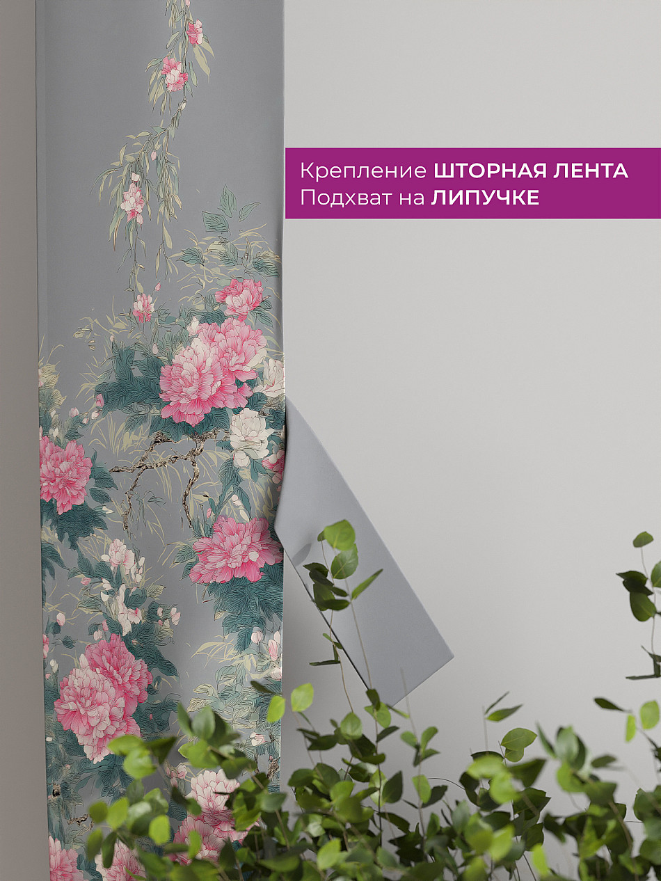 На высоте 125 см. пришит подхват (ширина 10 см.), который позволяет легко зафиксировать ваш тюль или шторы в нужном положении при помощи липучки.