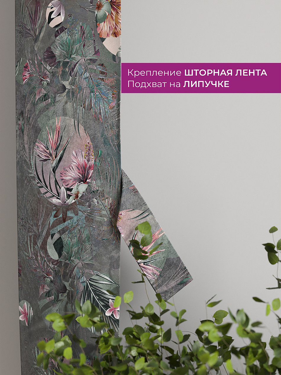 На высоте 125 см. пришит подхват (ширина 10 см.), который позволяет легко зафиксировать ваш тюль или шторы в нужном положении при помощи липучки.