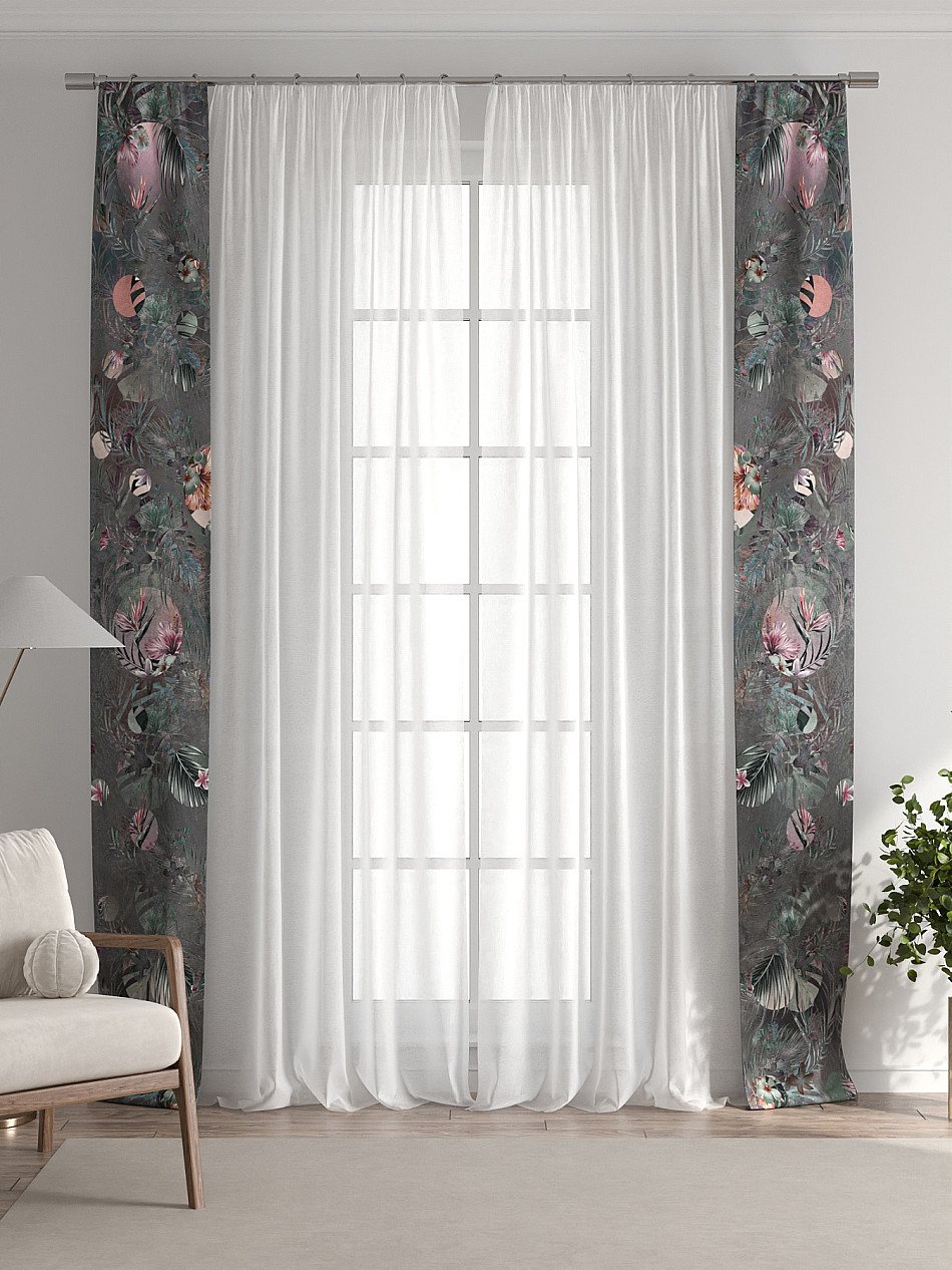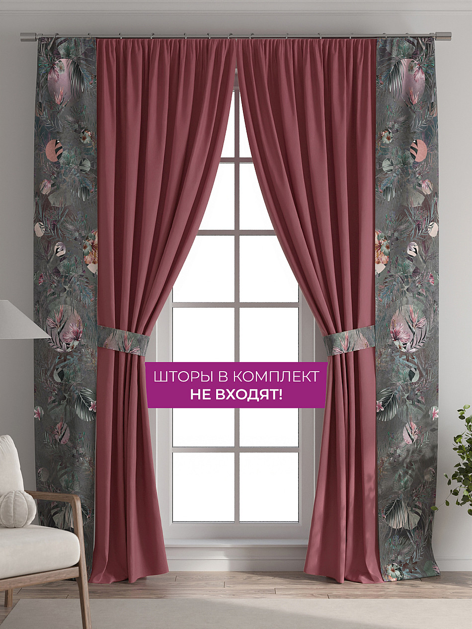 В комплект входят две узкие шторы шириной всего 38 см и длиной 260 см., которые навешиваются рядом с вашими занавесками или тюлем не утяжеляя вид окна и не препятствуя попаданию солнечного света в комнату. При этом выполняют роль подхватов и добавляют акцент в интерьер.