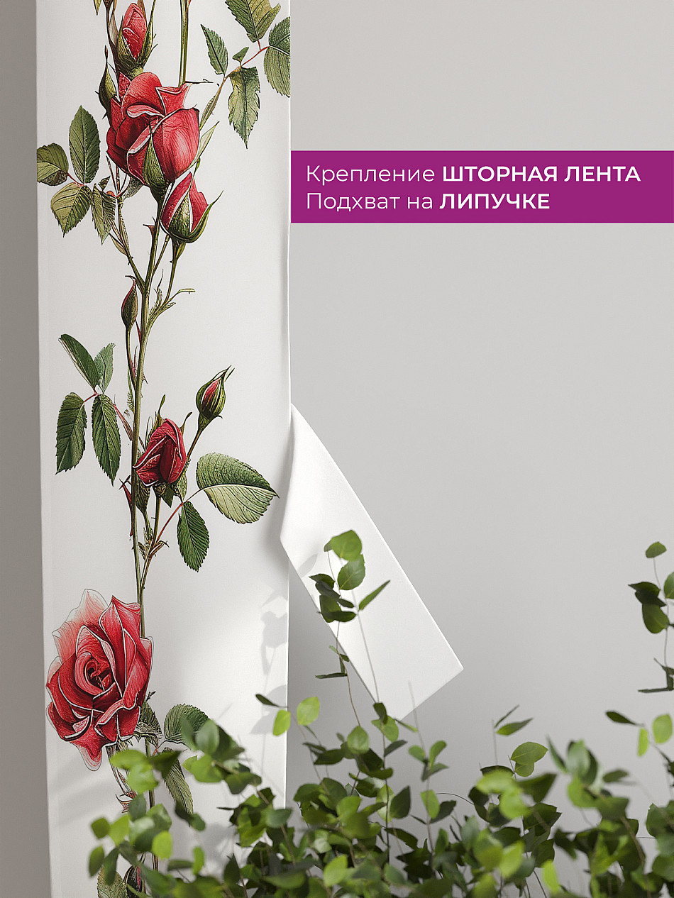 На высоте 125 см. пришит подхват (ширина 10 см.), который позволяет легко зафиксировать ваш тюль или шторы в нужном положении при помощи липучки.