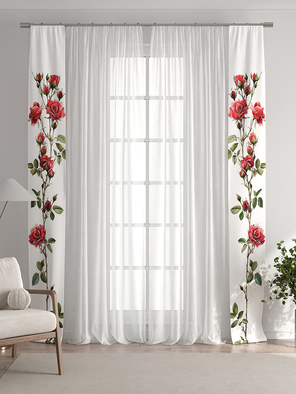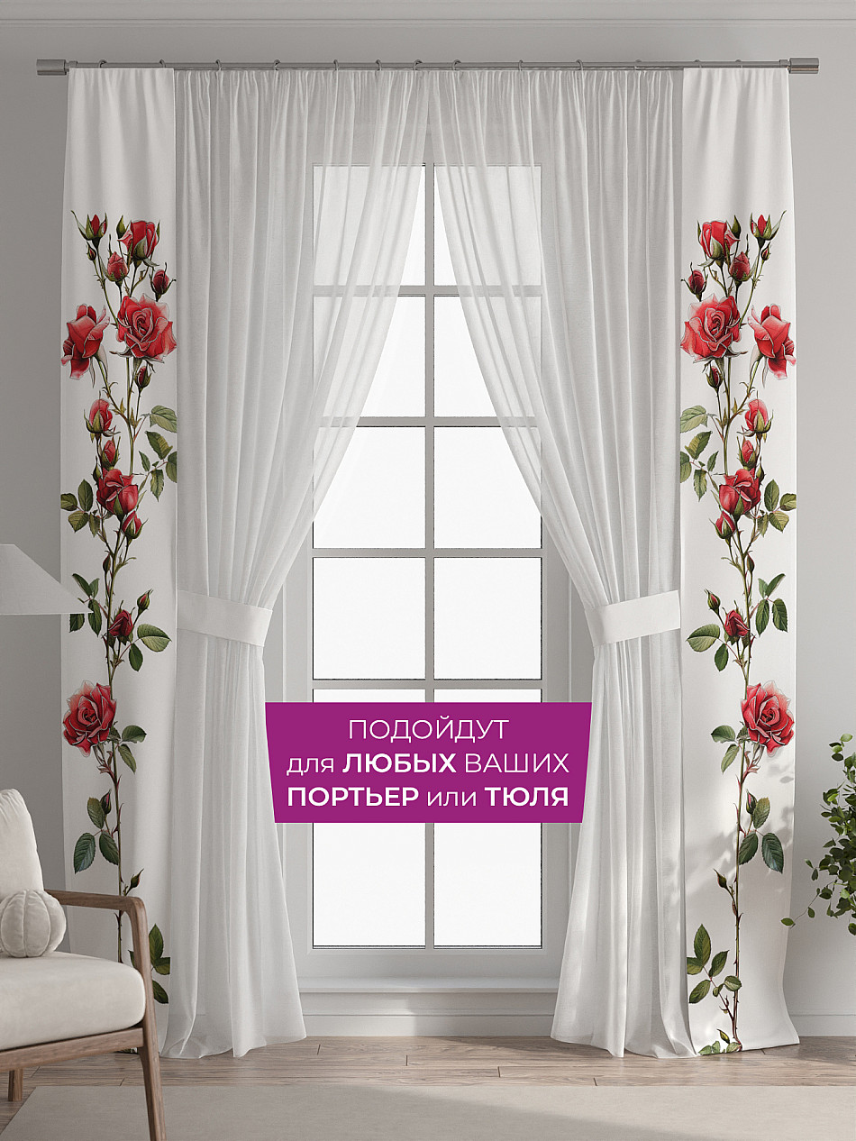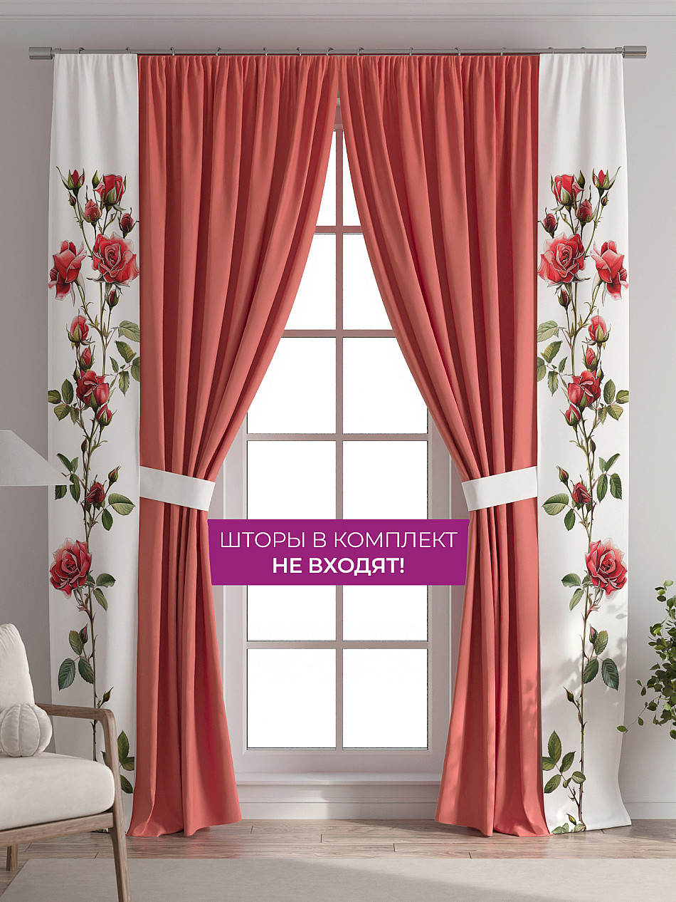 В комплект входят две узкие шторы шириной всего 38 см и длиной 260 см., которые навешиваются рядом с вашими занавесками или тюлем не утяжеляя вид окна и не препятствуя попаданию солнечного света в комнату. При этом выполняют роль подхватов и добавляют акцент в интерьер.
