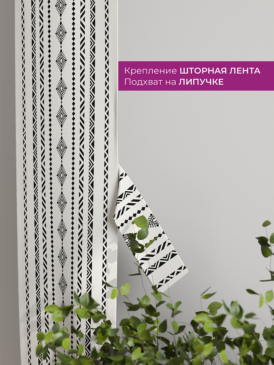 На высоте 125 см. пришит подхват (ширина 10 см.), который позволяет легко зафиксировать ваш тюль или шторы в нужном положении при помощи липучки.