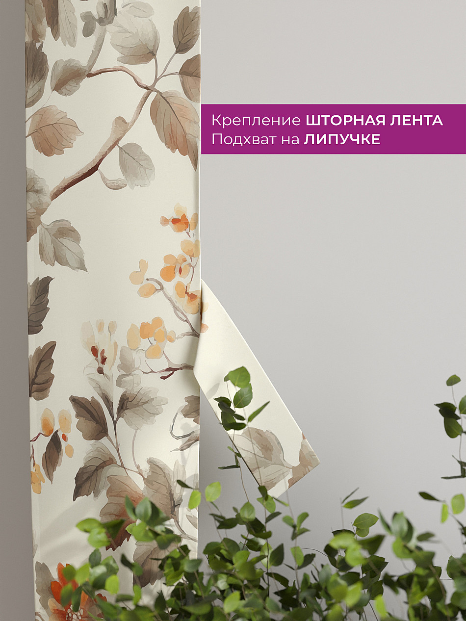 На высоте 125 см. пришит подхват (ширина 10 см.), который позволяет легко зафиксировать ваш тюль или шторы в нужном положении при помощи липучки.