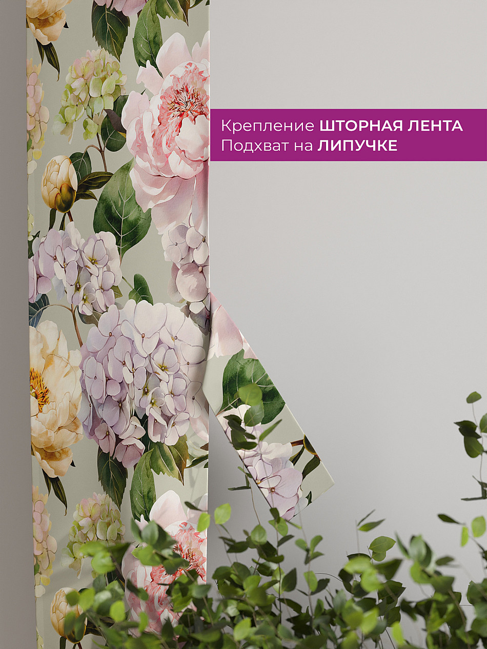 На высоте 125 см. пришит подхват (ширина 10 см.), который позволяет легко зафиксировать ваш тюль или шторы в нужном положении при помощи липучки.
