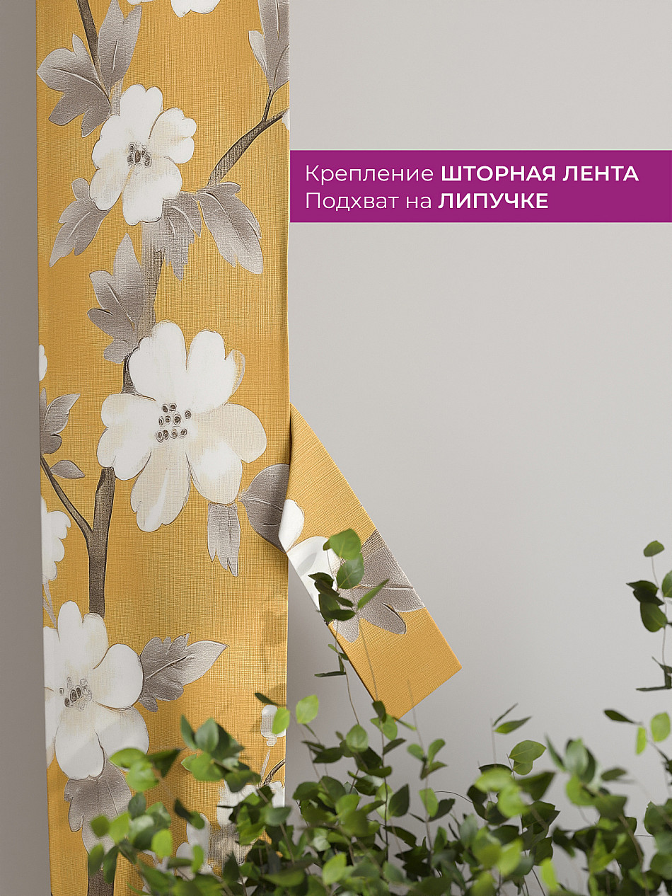 На высоте 125 см. пришит подхват (ширина 10 см.), который позволяет легко зафиксировать ваш тюль или шторы в нужном положении при помощи липучки.